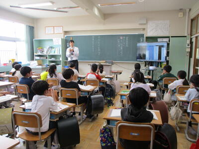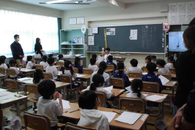 2時間目には、今年度の1回目の避難訓練をしました。今回は地震を想定し、「身を守る」「避難経路の確認」「避難場所の確認」「正しい避難の仕方」を訓練しました。避難開始から完了まで3分もかからずに完了しました。