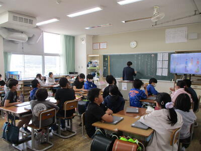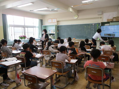 まる3、4組 社会科・算数科 学年ごとに先生と一緒に学びを進めました。