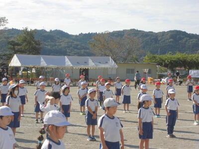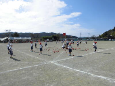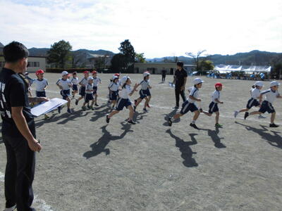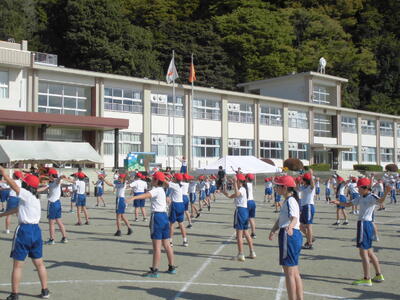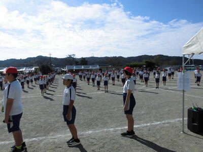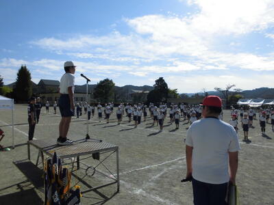 開会式、ラジオ体操、徒競走の順で始め、競技種目だけでなく係の児童の練習も兼ねて行いました。