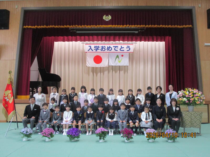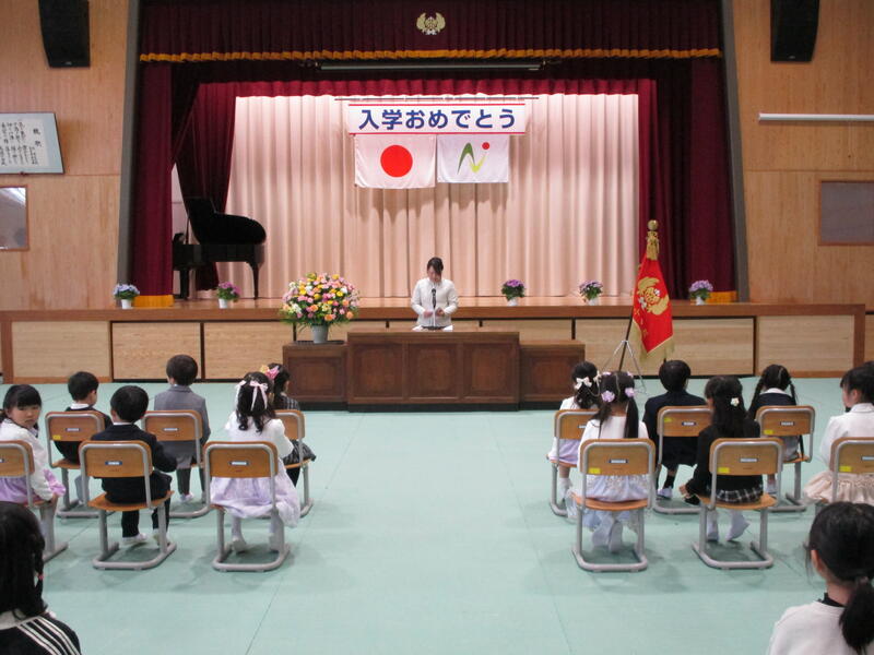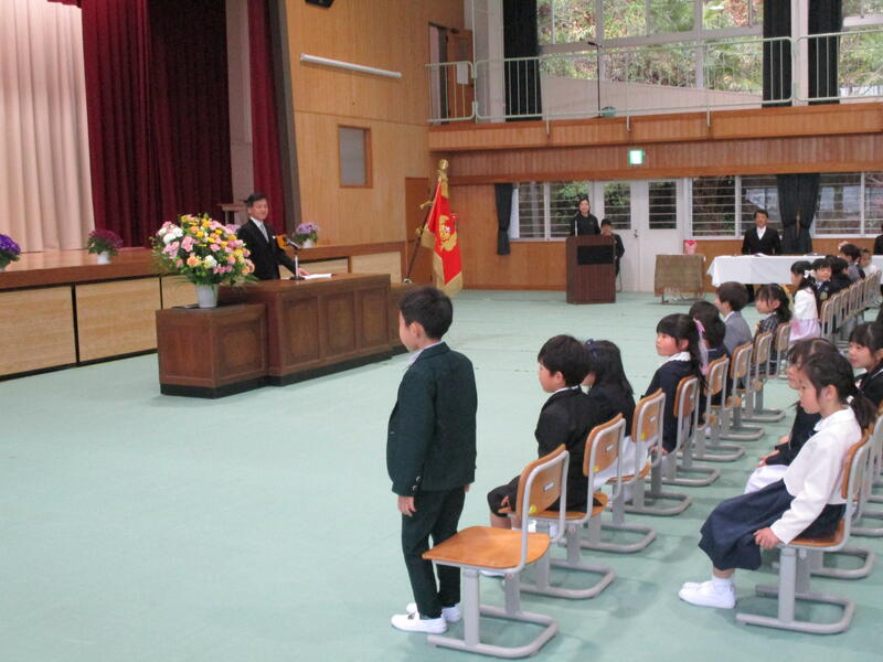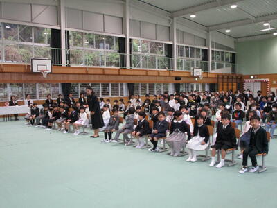 新入生のみなさんは、緊張の中でも担任の先生からの呼びかけに大きな声で返事をして、お話の聞き方もすっかり小学生らしく、立派な入学式でした。