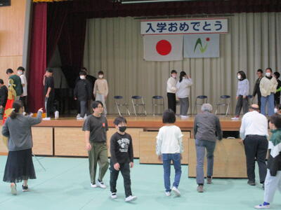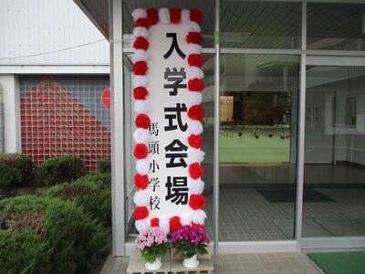 6年生の代表児童がお迎えの言葉を述べて、新入生は「チーム馬頭小」に仲間入りしました。明日からの学校生活を楽しみにして、元気に登校してください。待っています。