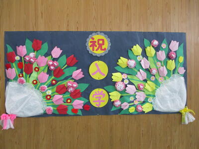 1年生教室 いよいよ明日が入学式です。教室は、すでに明日の入学式に向け雰囲気ができあがってきています。