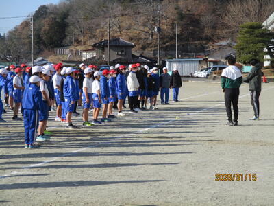 開会式 ルールの確認や会場の説明を聞きました。町内の5,6年生が一堂に集まると、いつもとは違った迫力がありました。