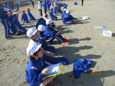 5,6年生でそれぞれ6人チームを編成し、4つのコートに分かれて試合をしました。日頃とは違った緊張感の中、作戦を話し合い、熱いプレーで熱戦を演じました。待機チームからは大きな声援が送られ、学校の校庭はいつも以上に、活気があふれていました。
