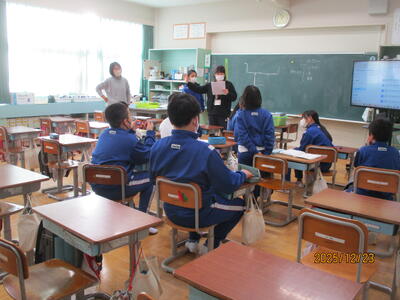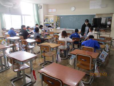 昼休みの時間を使って、来年度の登校(下校)の班づくりをしました。徒歩、バスの方面ごとに教室に分かれて集合し、担当の先生のお話を聞きながら、安全に登下校するため、令和8年度の新たな班を考えました。この後、調整しながら新一年生を加えて、班を決めていきます。