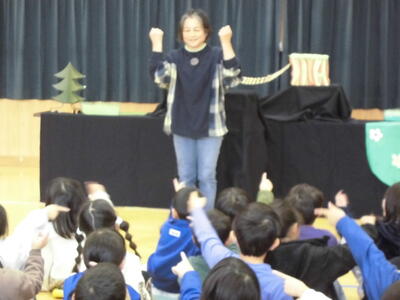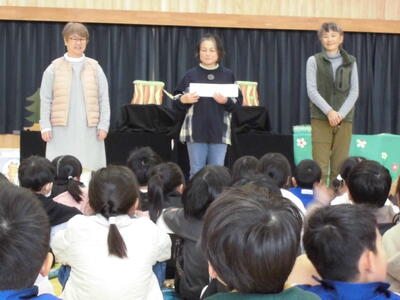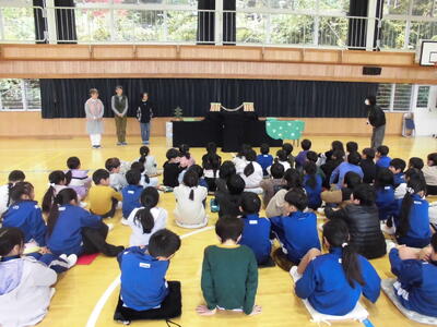 昼休みに、読み聞かせボランティア「たまご」の皆さんが来校され、1、2、3年生の子供たちにお話会を開いてくださいました。