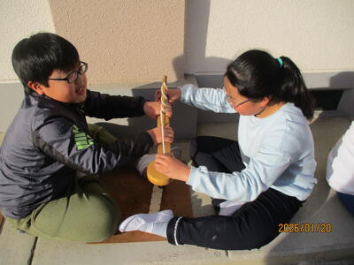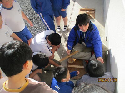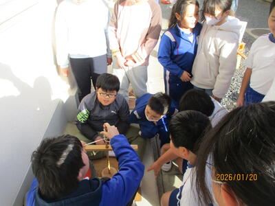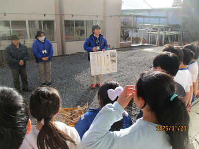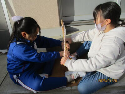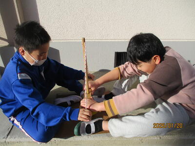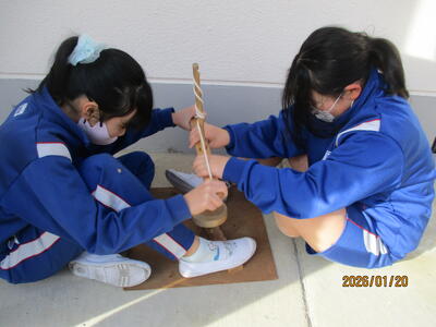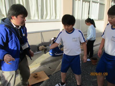 20日(火)の6校時にクラブ活動があり、ネイチャークラブでは外部指導者に風土記の丘資料館の先生方をお招きして、「火起こし体験」をしました。