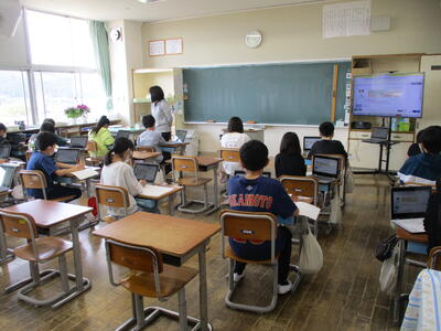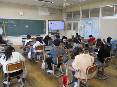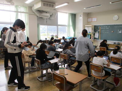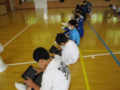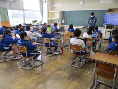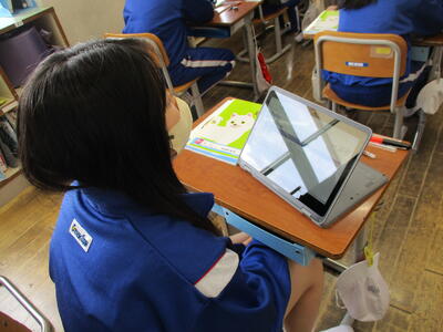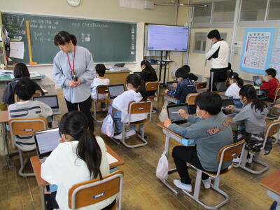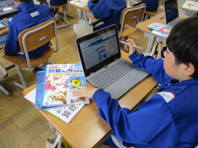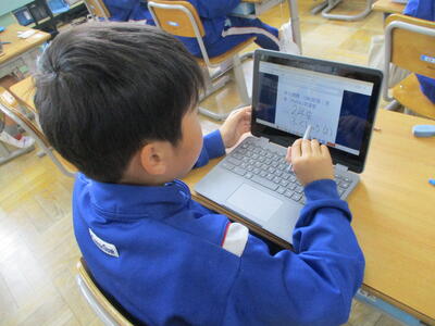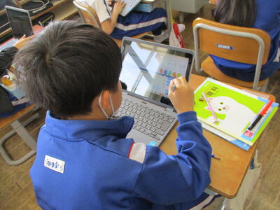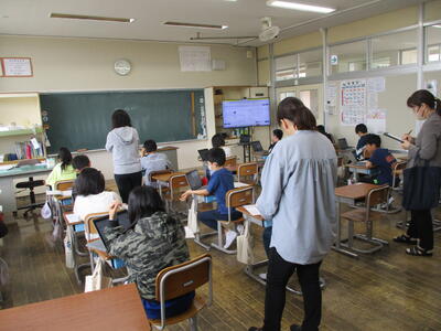 まる5年生 来週実施する「CTBとちまるチェック」の動作確認や操作法の練習をしました。子供たちは、タブレットPCの操作にも慣れているので、スムーズに進めていました。