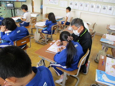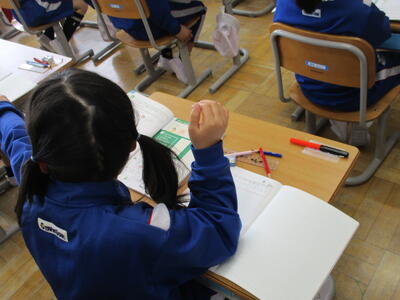 まる5組 国語科 先生のお話を聞きながら、じっくり進めていました。