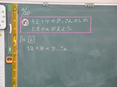 まる2年生 算数科 めあて「32+4の筆算の仕方を考えよう」
