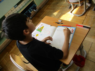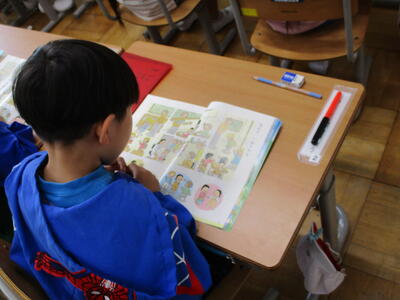 日差しがたっぷり、とても気持ちのよい一日です。各クラスでは、学習が本格的に始まり、子供たちの頑張る姿がみられました。(一部、昨日の様子も紹介しています)