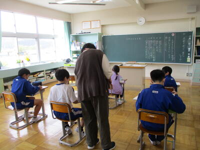 2時間目には、今年度の1回目の避難訓練をしました。今回は地震を想定し、「身を守る」「避難経路の確認」「避難場所の確認」「正しい避難の仕方」を訓練しました。避難開始から完了まで3分もかからずに完了しました。