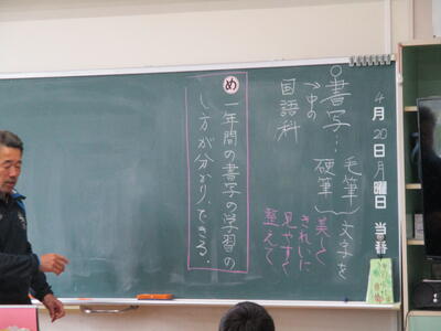まる6年生 書写 今年度の最初の時間でした。心構えなどを確認していました。