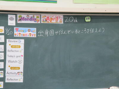 まる6年生 外国語科 めあて「出身国やすんでいるところを伝えよう」
