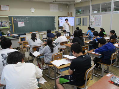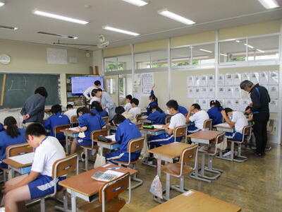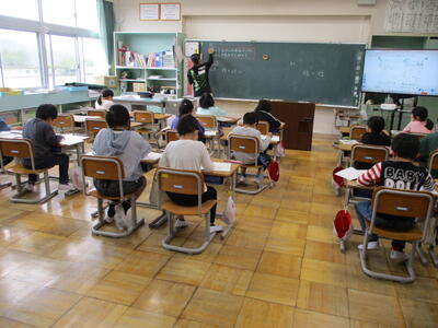 まる6年生 算数科 考え方を高める問題を解きました。多くの職員が支援に入っていました。