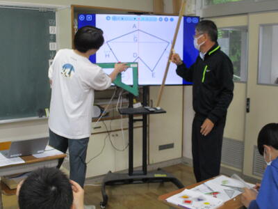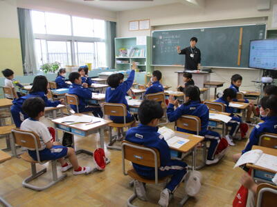 まる3、4組 社会科・算数科 学年ごとに先生と一緒に学びを進めました。