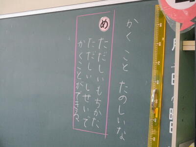 まる4年生 書写 めあて「1年間の書写の学習の仕方が分かり、できる。」