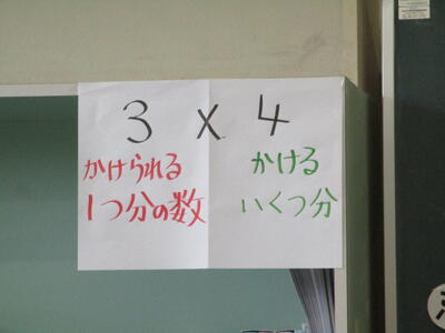 まる3年生 算数科 めあて「12×4の計算を今までの学習の考えを使って説明しよう」