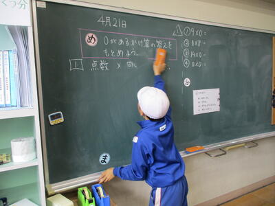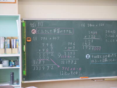 まる5組 算数科 めあて「いろいろな求め方をしよう」で、かけ算の工夫を学びました。