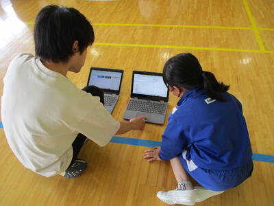 まる6年生 体育科 走る運動で、後半には全員が100m走の記録をとりました。2人一組になって、最後まで諦めずに走る姿が素敵でした。