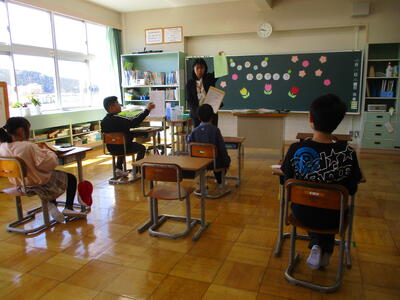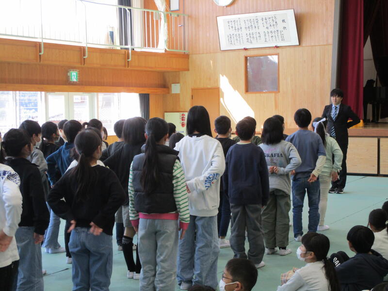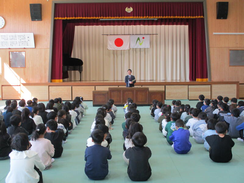 朝、体育館で修了式を行い、代表児童に修了証書と進級祝いを手渡し、一年の締めをしました。修了式では、学校の合言葉「あいさつ、笑顔、元気があふれる学校」と子供たちの合言葉「自分で、自分から」が、一人一人の頑張りでしっかりと達成することができたことを子供たちに伝えました。教室に戻ってからは、担任から通知表を通して、一人一人の成長や頑張りを褒め、伝えました。一年間、とてもよくできました。