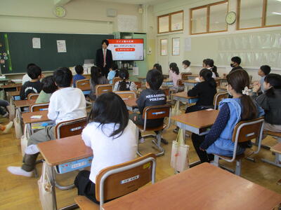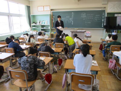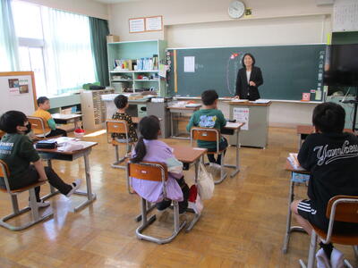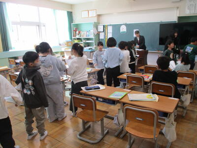 学習指導主任の先生から、授業のあいさつの仕方の確認をしました。5年生のみなさんがお手本を示してくれました。