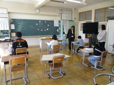 始業式の後、新たな担任の先生とともに学級開きをしました。自己紹介したり、教科書を受け取って名前を書いたりしながら、新しい学年の目標を立てていました。