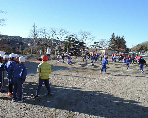 昼休み、校庭で遊んでいた児童も集合して記念撮影
