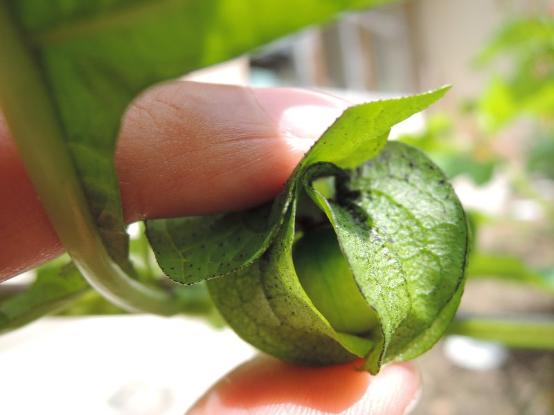 花が咲きました。 咲き終えると、中に実を付け、袋が黒い色になります。
