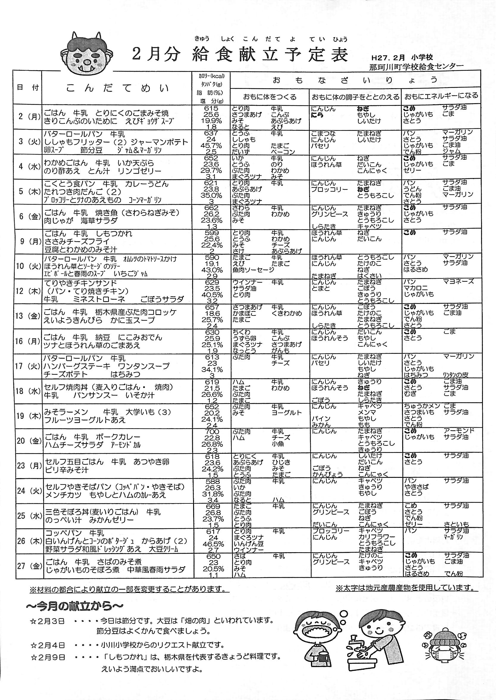 2月の学校行事予定