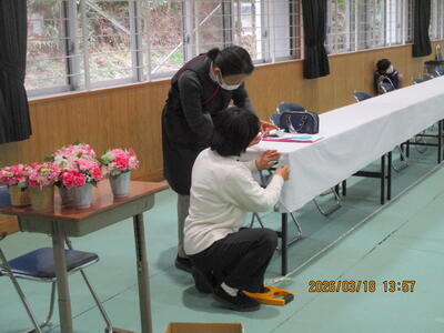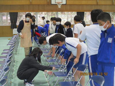 3月18日(水) 4,5年生が卒業式場の準備をしました
