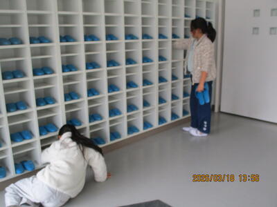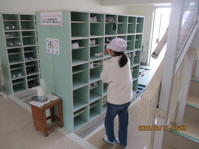 今日は特別日課を組んで、教室の荷物を運び出しながら床をきれいに水拭きしてから、ワックスがけをしました。教室が一つずつ上の学年に上がるための準備が着実に進んでいます。