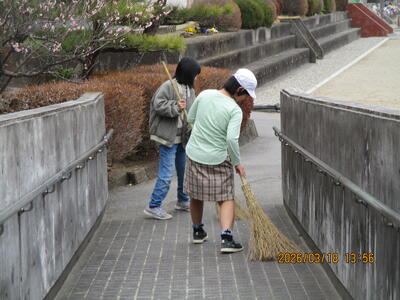 体育館通路の清掃 落ち葉や砂埃をきれいに掃きました。