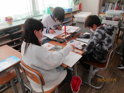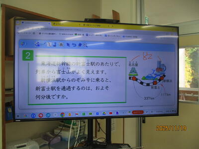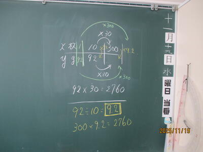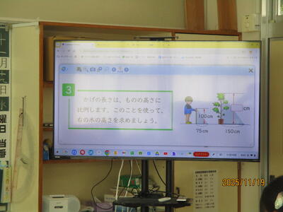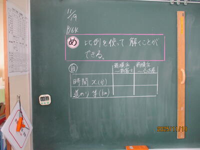 1校時目に6年1組の算数科の授業があり、比例の考え方を使って問題を解決する学習をしました。