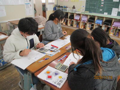 グループでの解決 考え方をそれぞれが表現し、班で1枚の紙にまとめていきます。