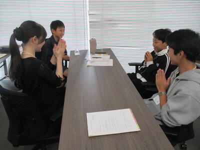 3校(本校、馬頭東小、小川小)合同のため、はじめに「ギョウザじゃんけん」でアイスブレイクをしました。