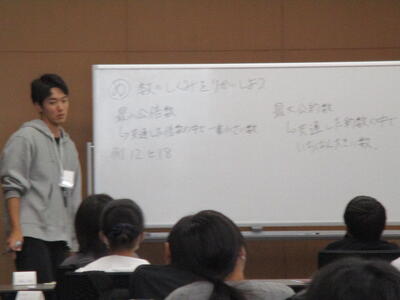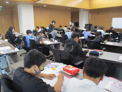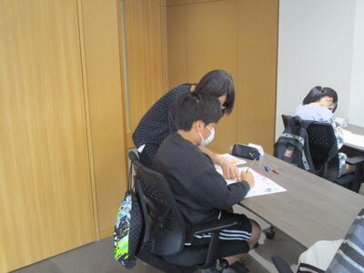 これは小学6年生の希望者を募り、中学校に向けての実力アップを図り、安心して中学校に進学してもらおうという取組みです。指導の先生方には、地域のボランティアさんに加え、地元の大学生にも協力いただいて行います。