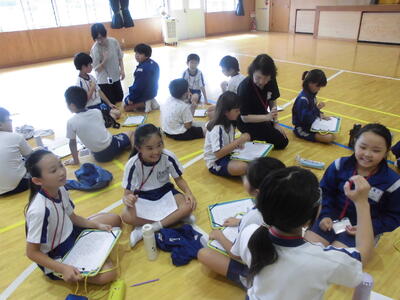 今日は2、3校時に4学年PTCAと3学年PTCAの親子活動がありました。4学年は「親子ミニ運動会」でした。4チームに分かれ、玉入れ、二人三脚、じゃんけん折り返しリレー、景品付きリレーなど盛りだくさんで、熱く接戦を演じました。3学年は、「親子スーパー見学」でした。子供たちは朝から楽しみにして、おうちの方の車でスーパーに向かい、見学と買い物をしました。日頃では体験できない雰囲気を木を味わったようで、笑顔で帰ってきました。