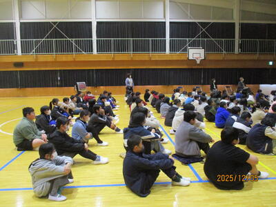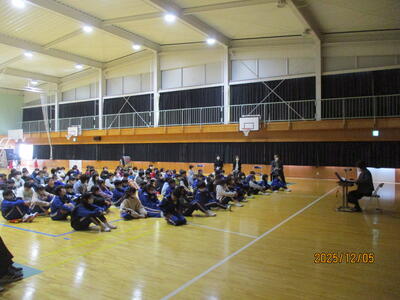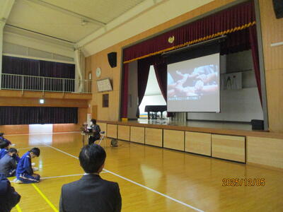 人権に関する動画視聴の後、人権擁護委員さんからお話をいただきました。人権は”やさしくすること””助けること””お話を聞いてあげること”など、身近なもので、できることから、今日から始めようとお話しいただきました。