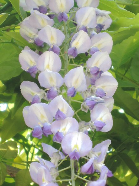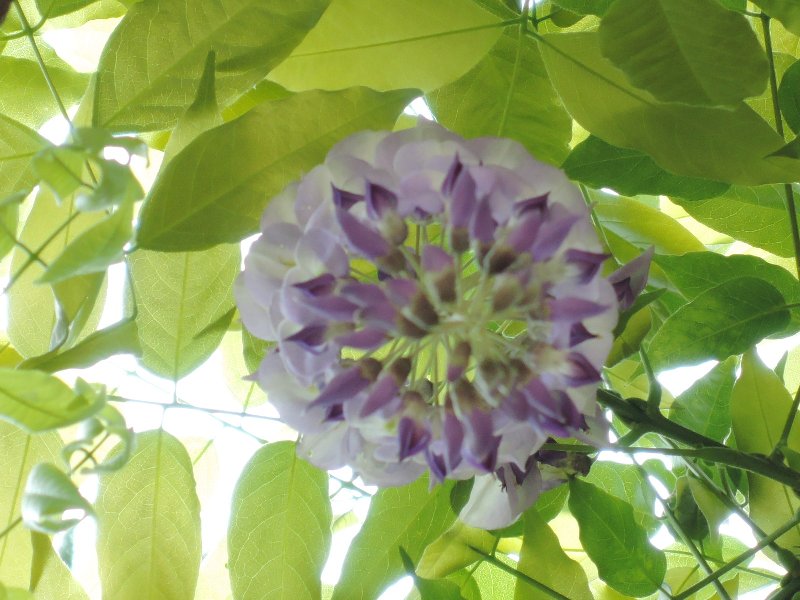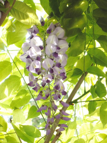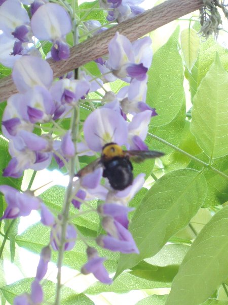 3・藤棚は、白と紫の藤です。 4・ハチが密をもとめて飛んできています。