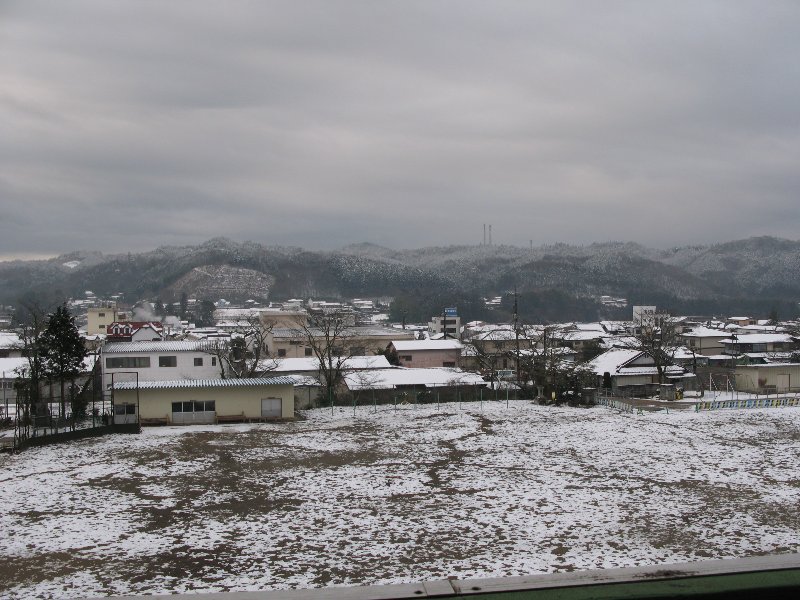 昨日は、未明から夕方まで、一日中雪が降っていました。幸い、湿気の多い雪で、解けやすく、道路には、ほとんど積もりませんでした。校庭も、ご覧のとおり、地面が見えています。子どもが作った土混じりの雪だるまは、解け崩れてしまい、がっかり!昨日、さかんに行われた雪合戦も、今日は、できないですね。朝のうちは、寒々とした曇り空ですが、まもなく晴れ気温が上がるので、おそらく今日のうちに校庭の雪も消えるでしょう。