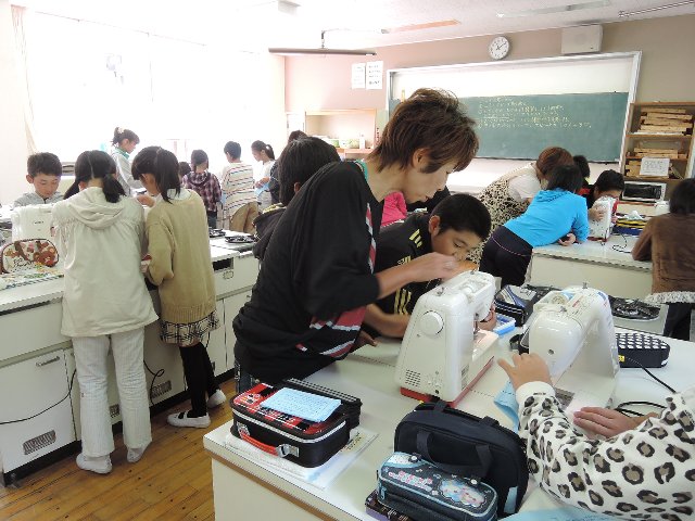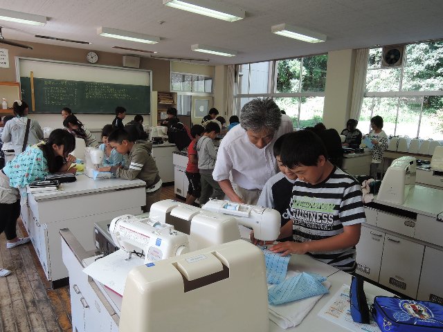 9月27日(金)、5年生家庭科におけるミシン縫いの学習のために、保護者のボランティアに来ていただきました。来ていただいた、ボランティアは、1組が佐藤さん、益子さん、江面さん、2組が鈴木さんでした。5年生にとっては、今回が初めてのミシンの学習になります。糸の付け方、ミシンの操作など、難しいところが多いので、そのポイントは個別に指導していただきました。