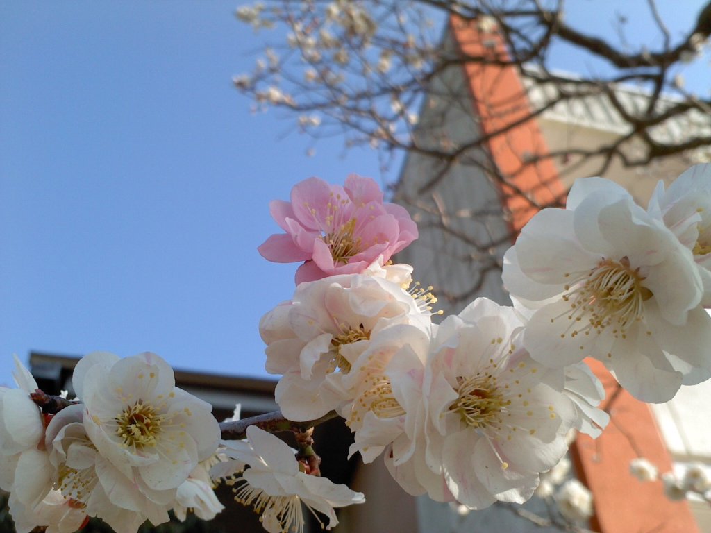 1本の木に紅白の花