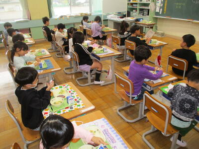5年生のみなさんが、町の栄養教諭の先生にお越しいただいて、「食に関する指導」を行いました。