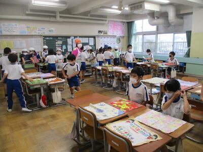 集会が終わると、6年生のみなさんが暗幕を開けて、施錠もしていました。さすがです。