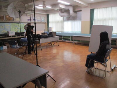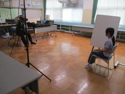 6年生の卒業アルバム写真撮影の様子 1組、2組が順に撮影しました。