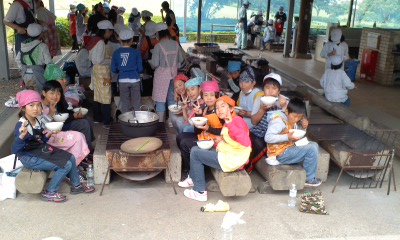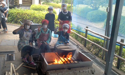 臨海自然教室3日目 大鍋力うどん作り