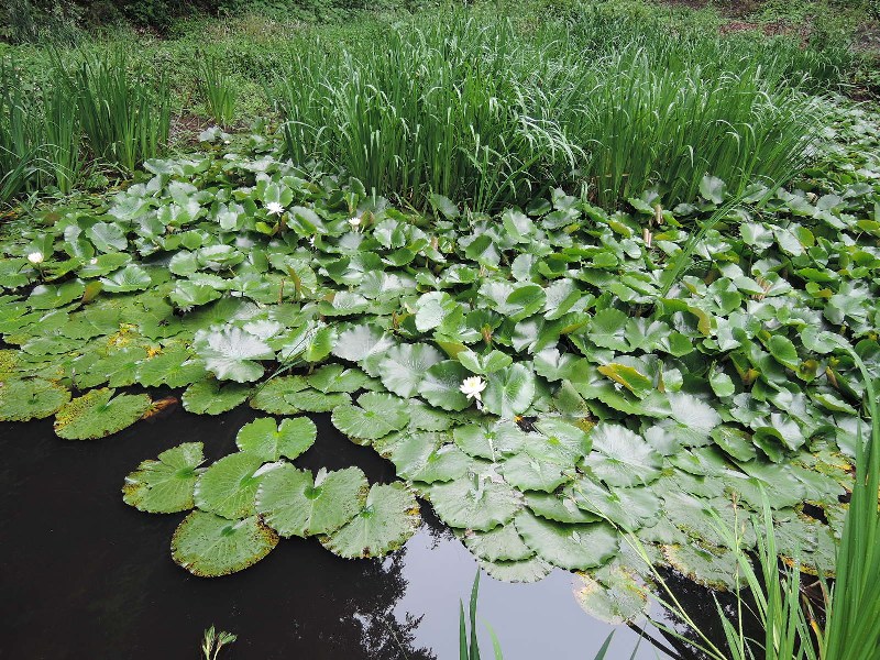 学校裏の池にスイレンの花が咲き始めました。白い色の端正な形の花です。たくさん咲きそろうときれいですね。エジプトではナイル川河畔に咲き、「ナイルの花嫁」と呼ばれ、国花となっているそうです。また、フランスの画家モネは、スイレンを題材にしてたくさん油絵を描いていることで知られています。6月21日(金)、この日は天気もよく、カエルやザリガニが花見??で、水面に顔を出していました。(写真はクリックすると拡大できます。)