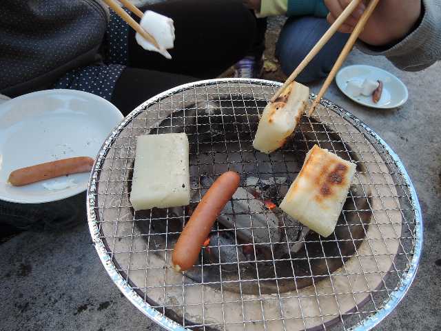 ネイチャークラブでは、火起こしと餅焼きをしていました。