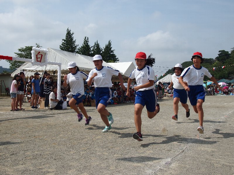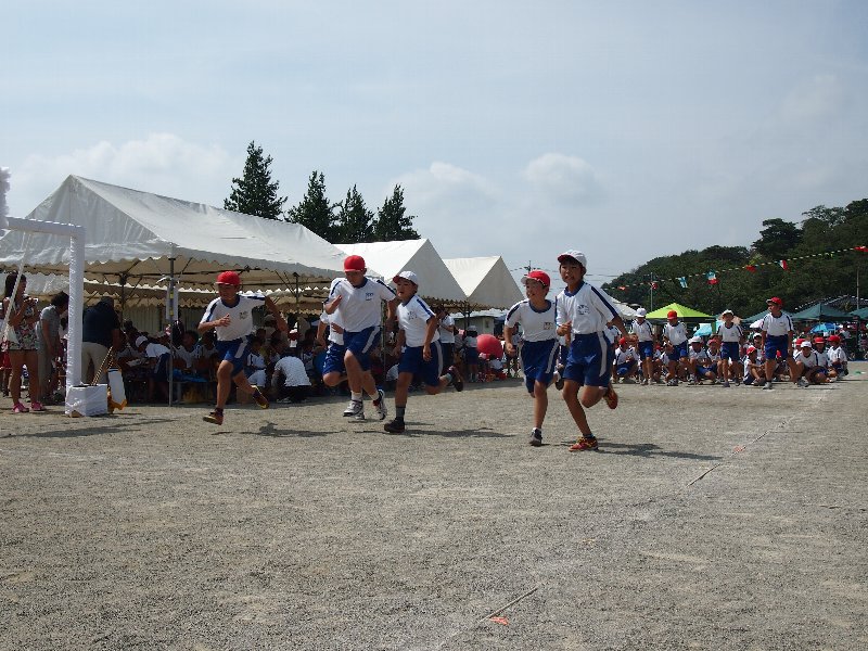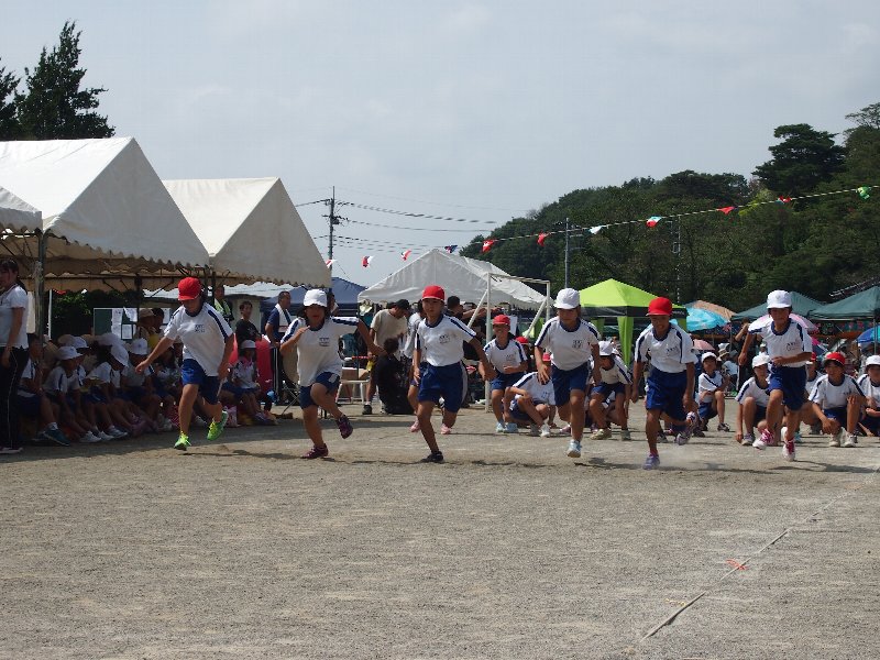 5・6年生は、100mを走ります。さすがに、上級生は速いですね。陸上競技県大会に出場した児童もいます。来入児のかけっこは、都合により欠席した方もありますが、現在のところ、49名が入学する予定です。